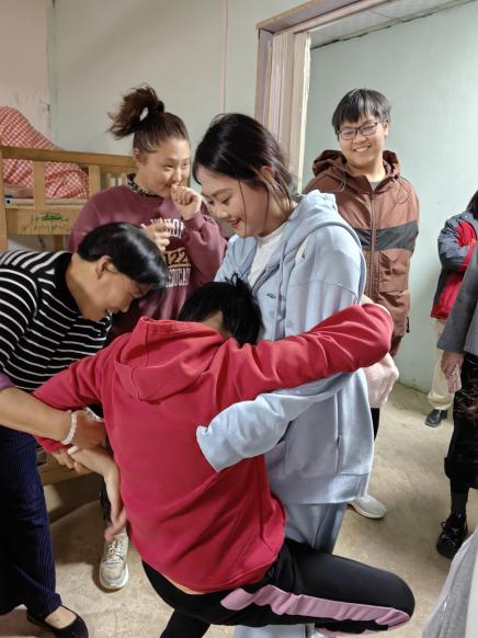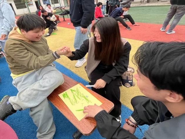 此次活动还准备了涂色石膏娃娃、折纸游戏等,志愿者们陪“心青年”用彩笔给石膏娃娃上颜色,在“心青年”的眼里,每个图形每个图案都有属于自己理解的颜色;操场另一端,志愿者手把手耐心教孩子们叠纸,共同放飞纸飞机,陪伴孩子们一同做球类游戏,以行动点燃点点微光,照亮心智障碍者们孤独的内心世界。