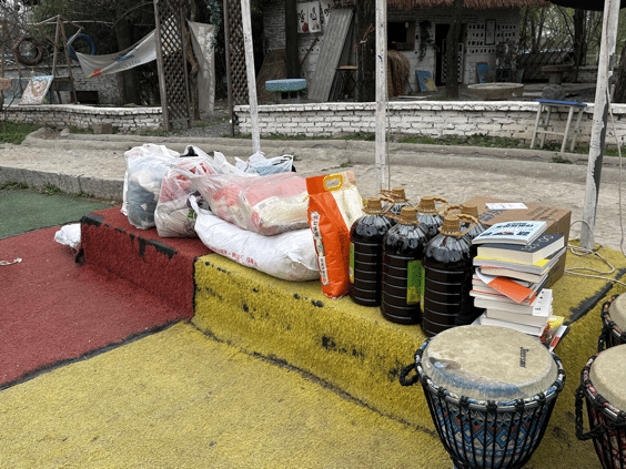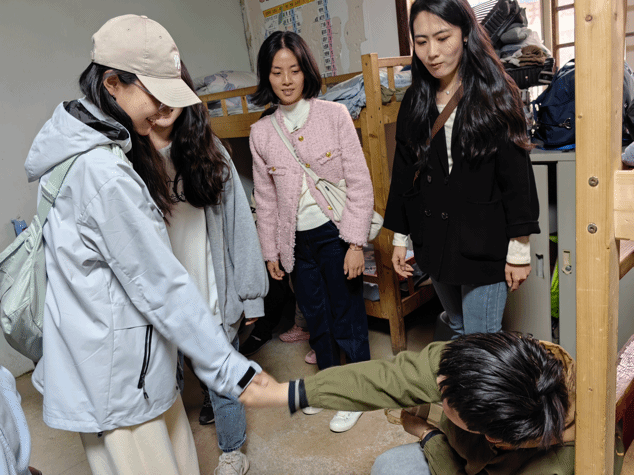 到达明慧阳光家园后,首先映入眼帘的是干净宽敞、充满童趣的院子。志愿者们先将米、面、油、衣物及其他生活用品整齐堆放在操场上,便由明慧阳光家园代表孙老师带领志愿者们了解孩子们的生活环境,讲述园区创办以来所遭遇的困境及其他爱心人士的无私帮助。聆听了园区所经历的坎坷和艰辛,志愿者们对园区看护人员的不懈努力和无私奉献表示由衷地敬佩。