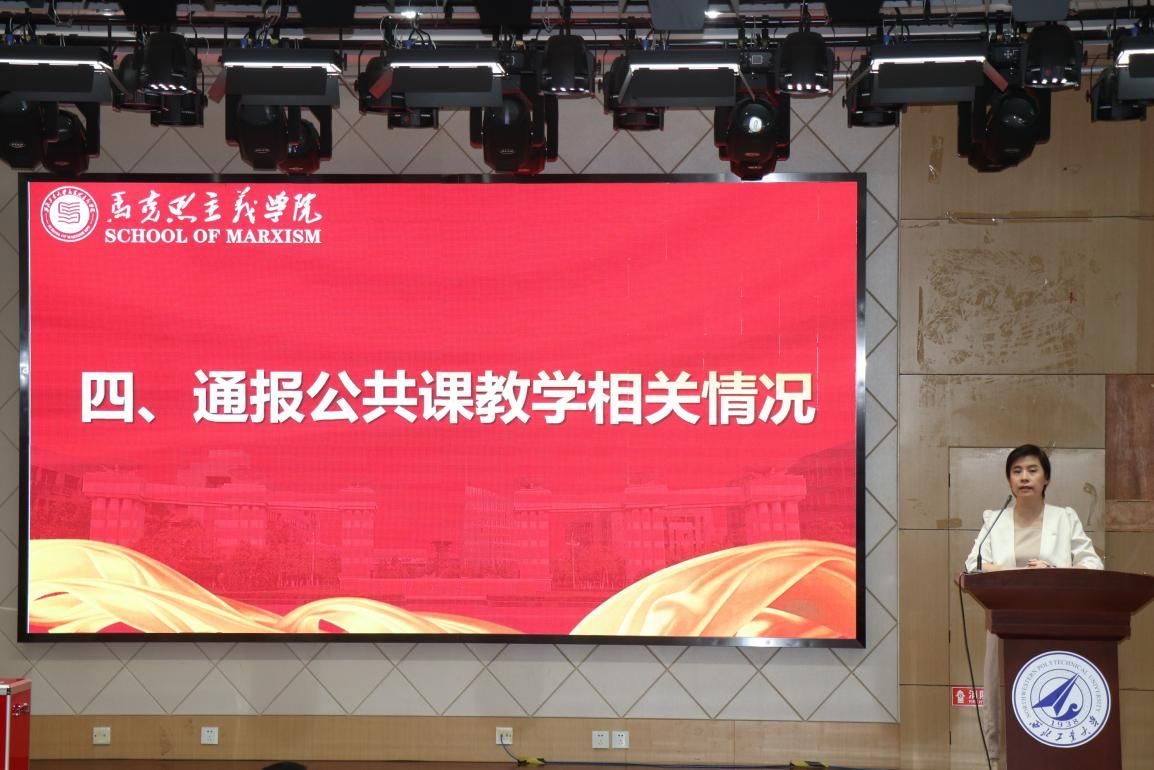 最后,副经理贺苗通报公共课教学相关情况,说明本学期期末成绩的提交时间和上传要求,并动员老师们参与思政课程课程思政教师“大练兵”活动。