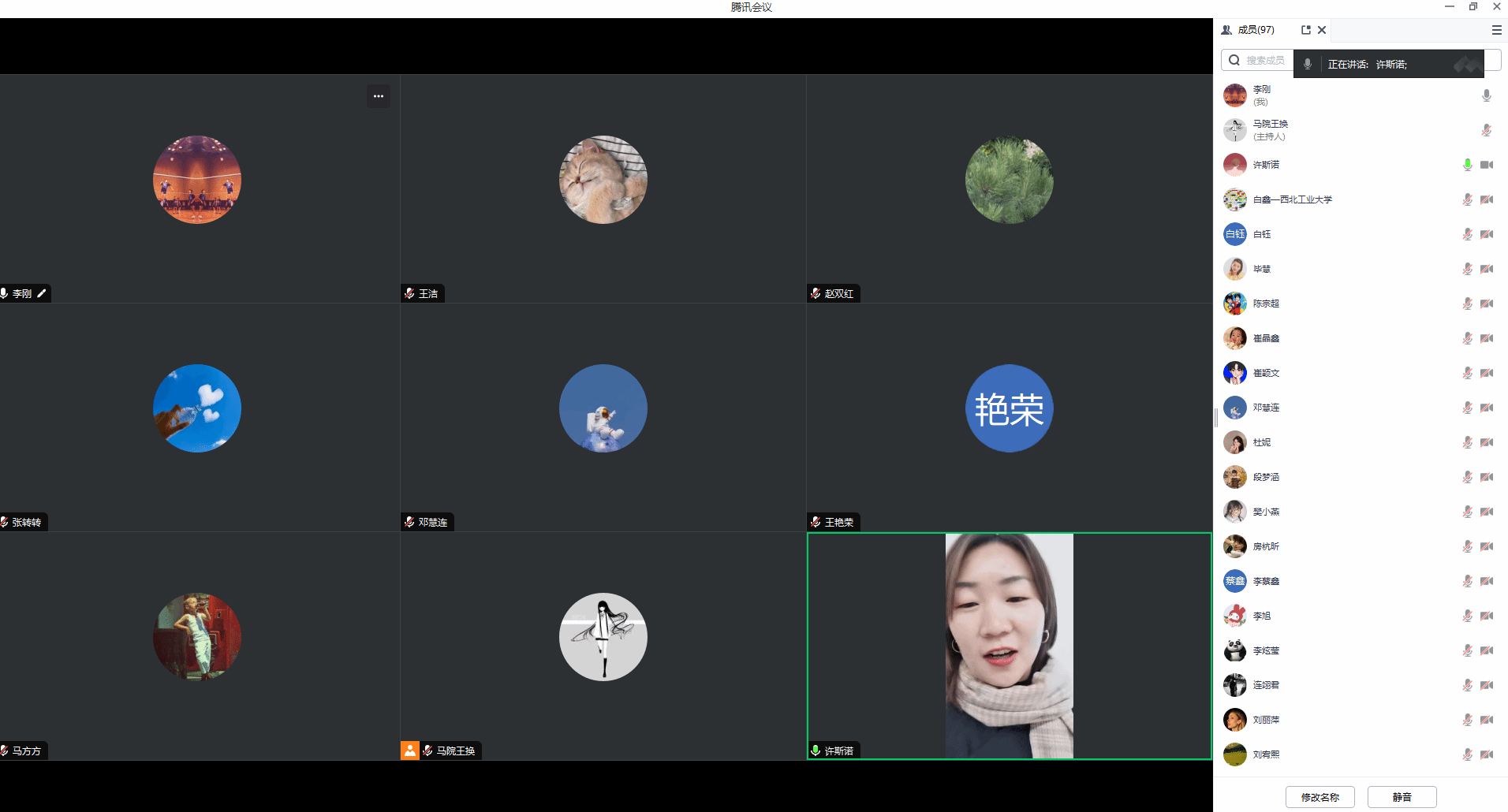最后,博士生辅导员许斯诺通过线上视频与大家见面,她叮嘱公司全体员工,特别是博士研究生在寒假期间要绷紧科研这根弦,充分利用假期提高个人学术研究能力,将自己的科研进度不断向前推进。