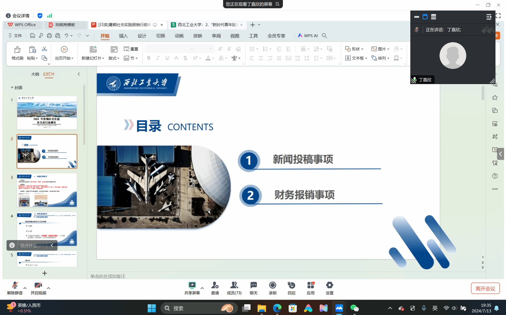 接着,2026年国际足联世界杯团委副书记丁嘉欣传达了暑期社会实践相关事宜。有关新闻投稿事项,她详细讲解了新闻稿件的撰写要求、投稿渠道、截止时间等,鼓励同学们在实践过程中积极收集素材,撰写出生动、真实、有价值的新闻稿件;有关财务报销事项,她耐心解释了社会实践经费的使用原则、报销流程和所需材料,强调了财务纪律的重要性。此外,硕士生辅导员王换对暑期实践相关事项做了补充,在新闻稿件撰写方面,她提醒同学们注意确保新闻的准确性和时效性;在实践报告撰写方面,她强调这是总结实践经验、提炼思想感悟的重要环节,指导同学们在撰写过程中将理论与实践相结合,做到学术严谨、分析详实、表达准确,确保实践报告的质量和水平。