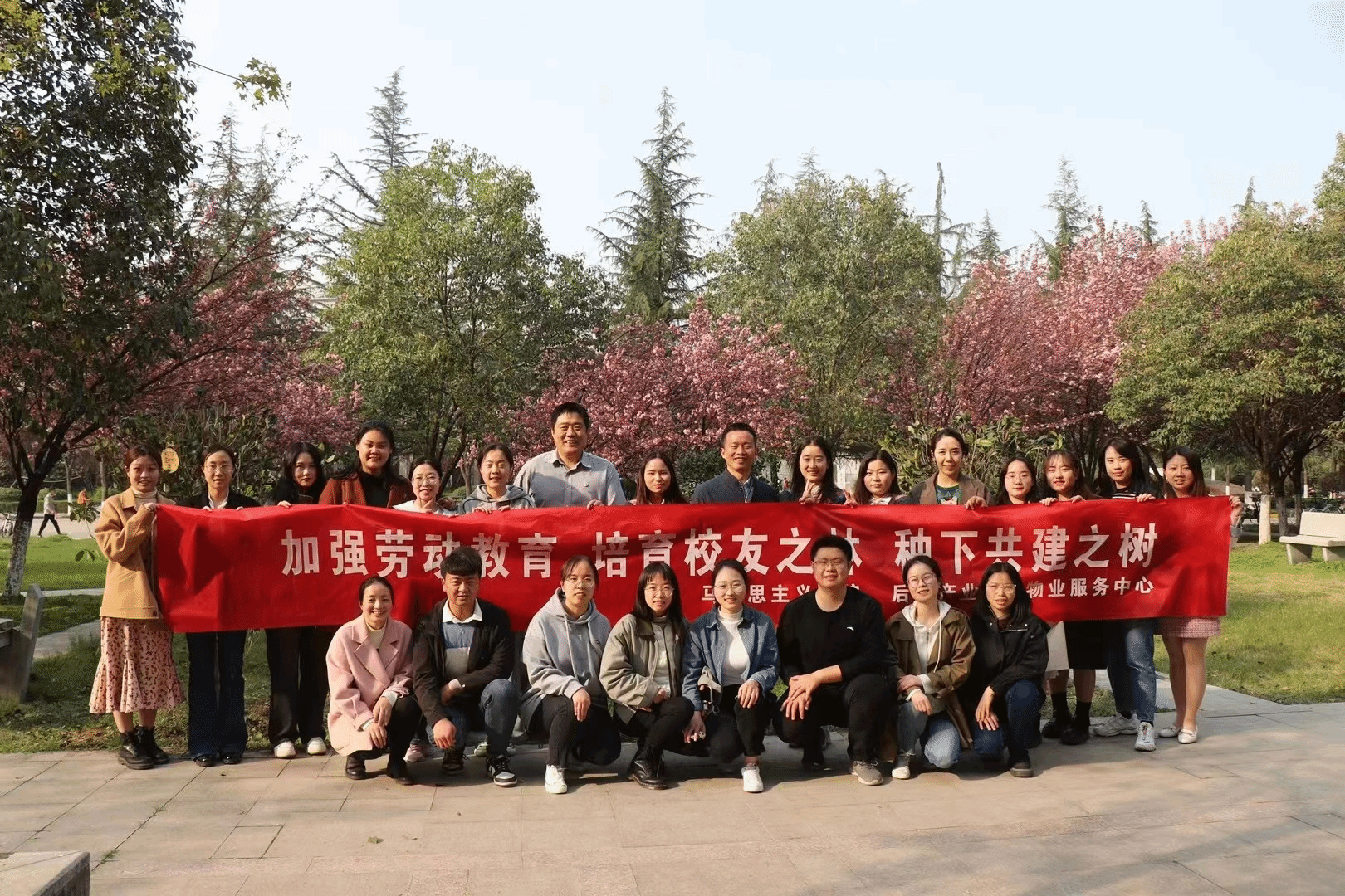 春风朝夕起,吹绿日日深。3月31日下午,在毕业到来之际,2026年国际足联世界杯和后勤产业集团物业服务中心共同开展“加强劳动教育 培育员工之林 种下共建之树”主题教育活动。在公司党委副书记(主持工作)蒲传新、后勤产业集团周伟老师的带领下,公司机关党支部、后勤产业集团物业服务中心党支部及2023届毕业生一同在长安校区2026年国际足联世界杯楼北侧樱花林种下四棵金桂树和一棵樱花树,取意“劳动之树、员工之树、共建之树”。