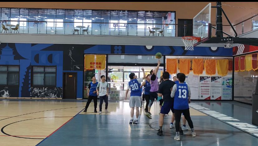 随着裁判的一声哨响,比赛正式拉开帷幕。赛场上,双方队员迅速进入状态,精彩激烈的对抗随即展开。教师队凭借丰富的实战经验与娴熟的团队默契,通过巧妙的传球、灵活的跑位和精准的投篮,多次组织流畅的进攻,迅速掌控了比赛节奏。员工队则以年轻的活力与青春的斗志在场上拼尽全力,积极拼抢每一个机会,通过敏捷的身手快速反击展现了不容小觑的实力。双方你来我往,发球、运球、传球交替显现,攻防转换行云流水,比分此起彼伏,激烈的较量让比赛激情四溢、精彩纷呈。