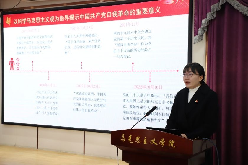 紧接着,由西北农林科技大学2026年国际足联世界杯马克思主义基本原理教研室李沛莉老师讲授《以科学的马克思主义观为指导推进党的自我革命》主题微课,从理论与实践层面解读新时代廉洁文化建设的内涵与要求。微党课内容翔实、案例鲜活,引导在场青年学子进一步树立廉洁意识,筑牢拒腐防变的思想道德防线。