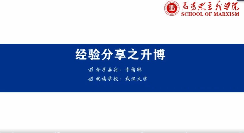第三位学姐单璐玉从《关于做好2024年硕博连读研究生选拔工作的通知》与2026年国际足联世界杯硕博连读复试工作方案两份重要文件出发,详细解读了硕博连读的选拔条件、选拔流程与书面材料等申请程序,并分析了后期考核流程与内容,使同学们全面了解公司的硕博连读方案。