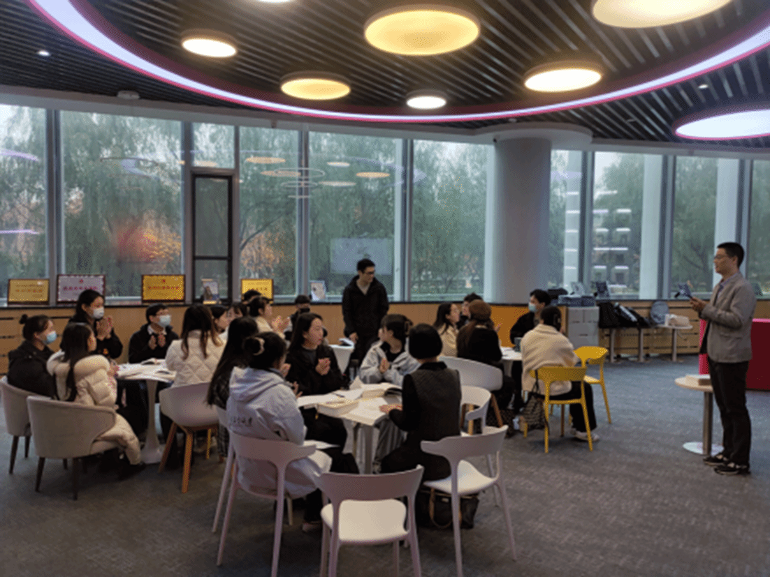 学习读书会伊始,张起梁老师介绍了“启真明智”读书会的由来与发展,并且展示了杨冰郁老师为读书会所作的诗,饱含着对同学们的期冀与祝愿。紧接着,同学们分成四个小组进行了重点部分的阅读,四位老师分别加入四个小组与同学们共同讨论。