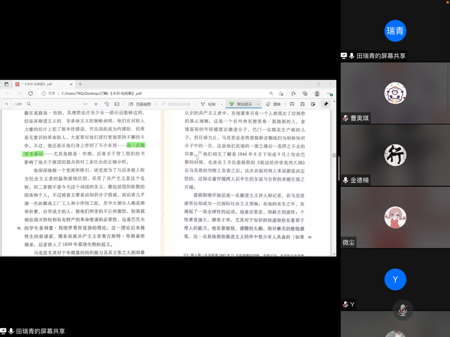 经过两小时的阅读和交流,本期读书会顺利结束。最后张云龙老师对本次读书会进行总结,对金老师的到来和指导表示感谢,希望同学们从文本出发,在文本中与作者对话,进而形成自己的研究视域,理解自己心中的马克思。