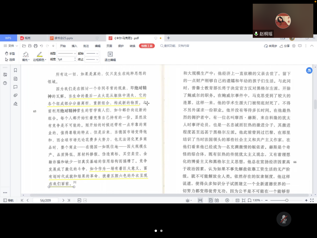 经过两小时的阅读和交流,本期读书会顺利结束。至此,《卡尔·马克思:生平与环境》的第四章青年黑格尔派已全部读完,之后开始对第五章“巴黎”的内容进行阅读。最后杨永强对参加读书会的老师和同学表示感谢,希冀下次读书会再见。