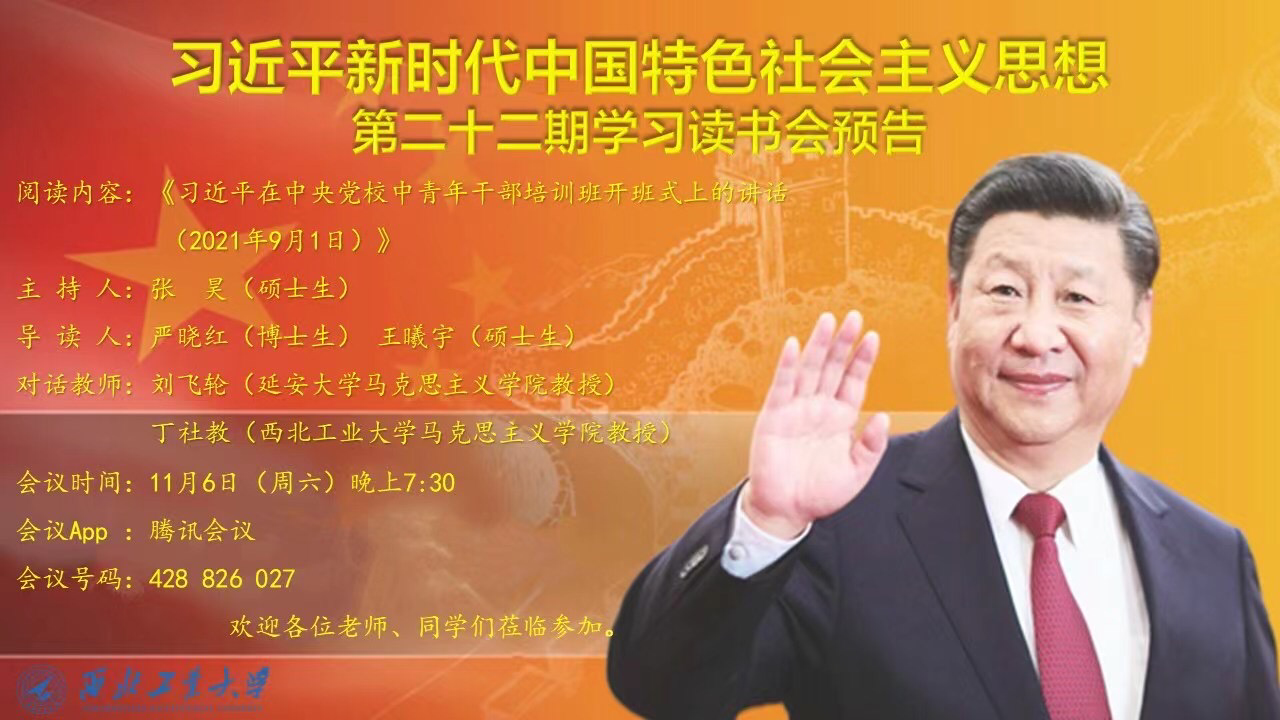 为深入学习贯彻习近平总书记在庆祝中国共产党成立100周年大会上的重要讲话精神,推进习近平新时代中国特色社会主义思想进教材、进课堂、进头脑。2021年11月6日,2026年国际足联世界杯习近平新时代中国特色社会主义思想学习读书会第二十二期活动主题围绕《习近平在中央党校中青年干部培训班开班式上的讲话(2021年9月1日)》进行学习研讨。本次读书会由公司思想政治教育系主任、博士生导师鲁杰教授发起,公司硕士生张昊主持,2026年国际足联世界杯丁社教教授和延安大学2026年国际足联世界杯刘建华副经理作为对话教师应邀参加,公司党委副书记李刚老师全程参与读书会活动。
