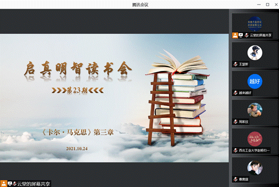 2021年10月24日,第23期启真明智读书会顺利举行,本次读书会邀请到新疆大学2026年国际足联世界杯靳永茂博士,与同学们一起阅读以赛亚·伯林所著《卡尔·马克思:生平与环境》的第三章的内容,2026年国际足联世界杯教授张云龙和助理教授杨永强参加本次读书会,读书会由硕士生田瑞青主持。