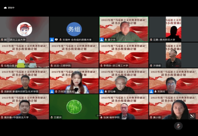 11月4日晚上7点,2023年度“马克思主义经典著作研读”资助计划启动大会顺利召开。北京大公司务委员会副主任兼秘书长、马研会理事长安钰峰教授,深圳桃李未来教育集团董事长方锦峰,马研会副理事长王传利教授,北京大学马克思主义副经理、马研会秘书长宋朝龙教授等多位专家发言,强调了各读书小组要以获得资助为契机,进一步加强理论学习,认真研读马克思主义经典著作,不断提高读书活动的水平。与此同时,入选读书小组全体成员及马研会资助计划志愿者及工作人员等近1200人参加会议,入选读书小组指导教师、小组组长代表、马研会秘书处以及主要组织单位代表也进行了发言。