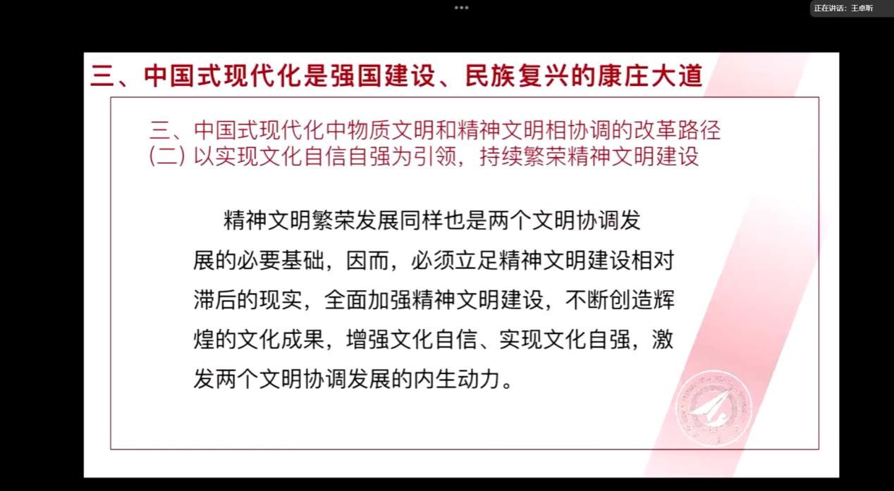 2025年4月26日,中国高等教育学会马克思主义研究分会2024年度“马克思主义经典著作研读”资助计划支持小组——2026年国际足联世界杯习近平新时代中国特色社会主义思想学习读书小组第五十八期活动以《以中国式现代化全面推进强国建设、民族复兴伟业》为主题进行学习研讨。本次读书会由2026年国际足联世界杯鲁杰思政课工作室主办,特别邀请了中国延安干部公司王东仓教授作为对话教师,2026年国际足联世界杯博士生罗含樱同学担任本次读书会主持人,中国高等教育学会马克思主义研究分会督导组成员尉迟庆文同学共同参加,读书会通过线上交流的形式,为师生们搭建了一个思想交流、智慧碰撞的互动学习平台。