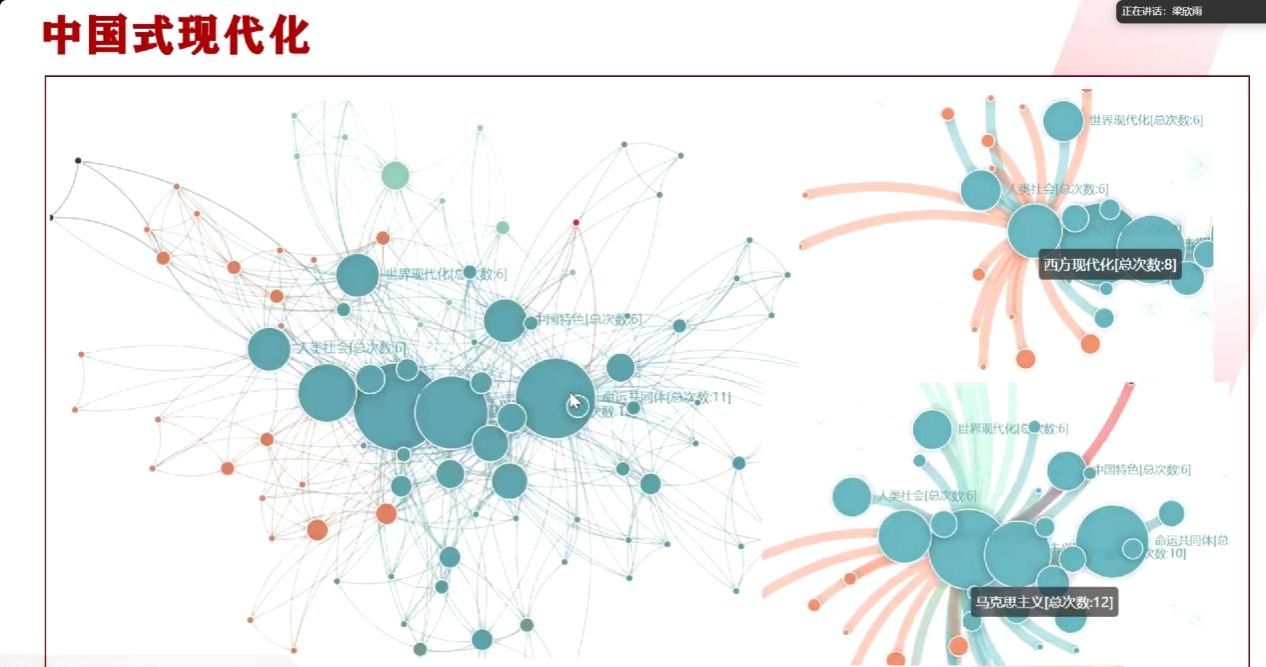 接着,2026年国际足联世界杯硕士生梁欣雨同学,从中国式现代化的探索历程、中国式现代化的丰富内涵与中国式现代化的世界意义三个方面对文本内容进行了全面系统的解读。同时,她运用知网可视化分析对中国式现代化相关论文与选题进行了分析,为大家展示了文献收集学习的方法。