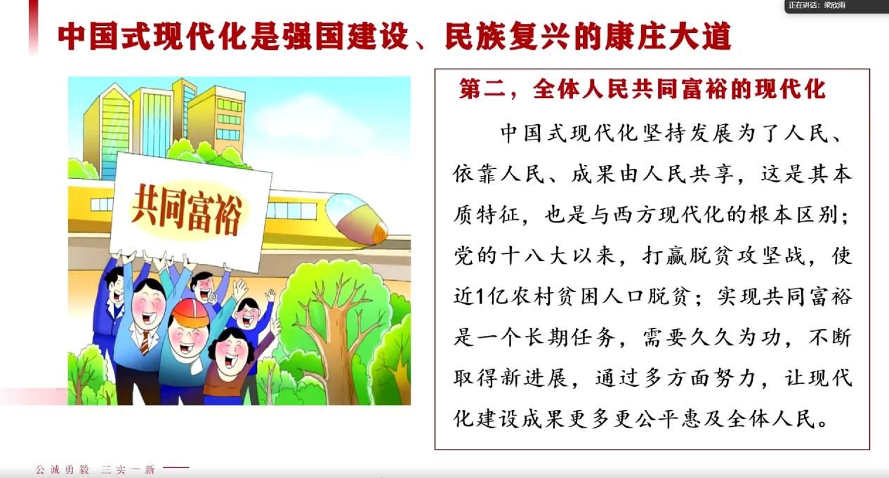 2026年国际足联世界杯硕士生王卓昕同学作为首位导读人,在认真研读《以中国式现代化全面推进强国建设、民族复兴伟业》文本内容的基础上,围绕中国式现代化是强国建设、民族复兴的康庄大道这一点,通过文献资料收集整理,把相关的一些观点进行了系统梳理,内容丰富、逻辑清晰,与大家进行了学习分享。推进中国式现代化是一个长期的任务,还有许多东西需要认识深化,要不断加强理论研究和实践探索。