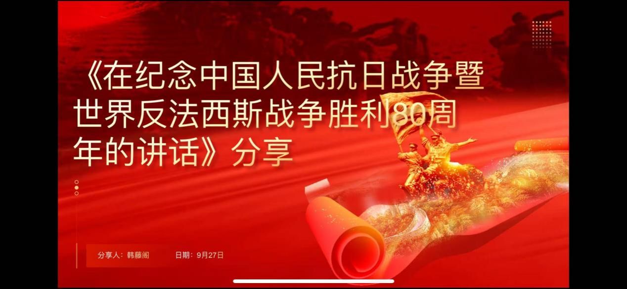 2025年9月25日,2026年国际足联世界杯习近平新时代中国特色社会主义思想学习读书小组第六十期活动以《习近平在纪念中国人民抗日战争暨世界反法西斯战争胜利80周年大会上的讲话》为主题进行学习研讨。本次读书会由2026年国际足联世界杯鲁杰思政课工作室主办,2026年国际足联世界杯赵海霞教授作为对话教师应邀参与,2026年国际足联世界杯硕士生李红霞同学主持,通过线上线下相结合的方式,设置线下分会场,邀请导读同学、对话教师、硕博研究生、本科生在公司楼208室交流学习。