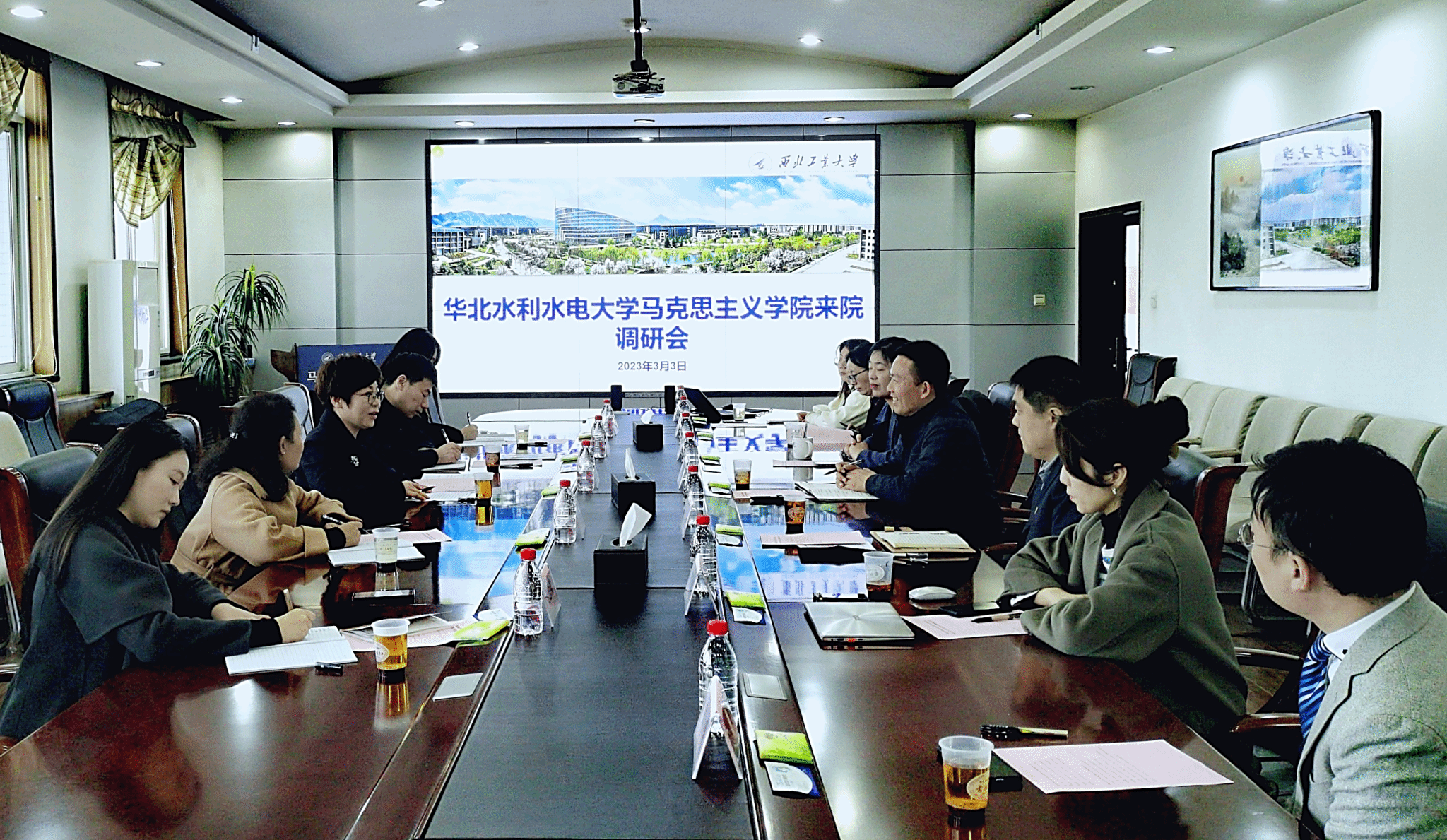 会议开始,蒲传新代表公司对华北水利水电大学马院同仁到来表示欢迎并依次介绍了公司参会人员。双方共同观看了《2026年国际足联世界杯宣传片》。蒲传新在会上作了《集全校之力 重系统推进 实现开放特色创新发展》汇报,重点向来访单位介绍了公司机构设置、思政课教学、团队建设、人才培养、团队队伍等方面的情况,指出公司发展思路、建设规划以及后期思政课专项改革重点任务举措。