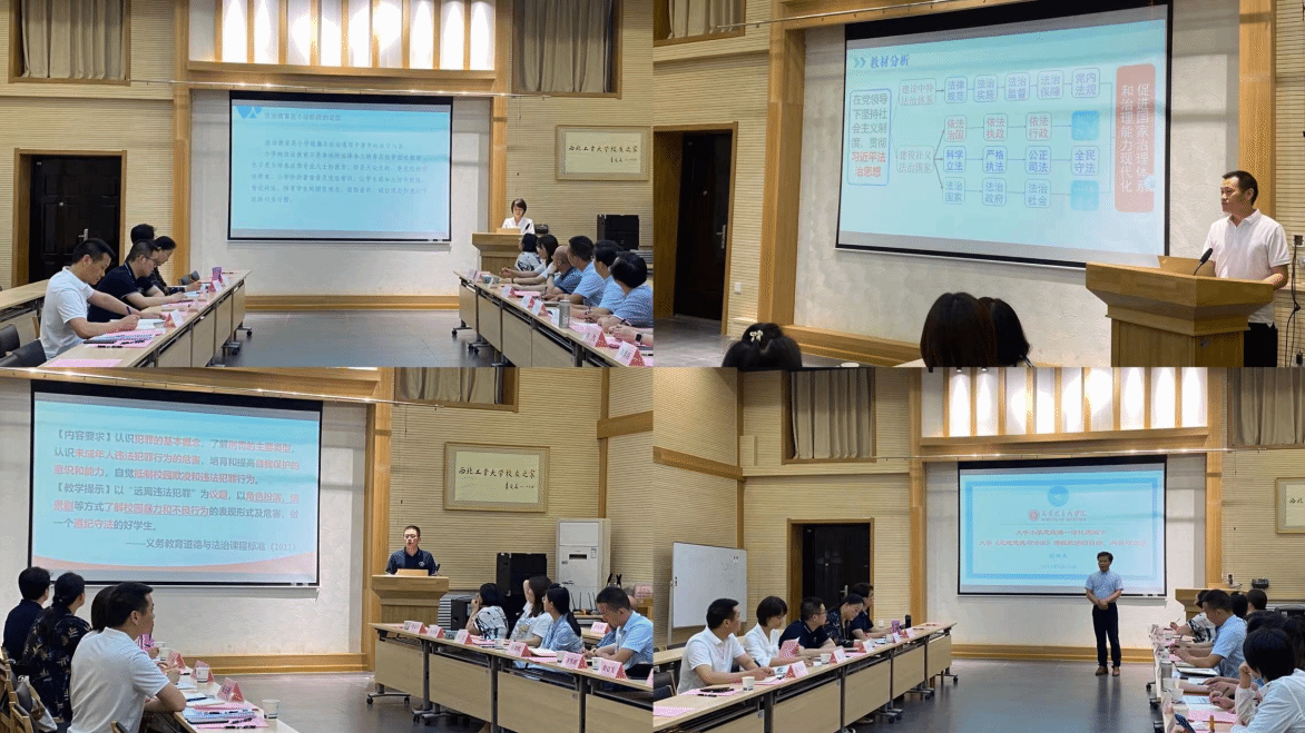 本次备课会围绕法治教育内容与思政课的有效衔接展开。来自大中小学的四位思政课教师依次进行说课展示。附小魏红老师根据小学时段法治教育普及化的目的设计了教学方案,将“法言法语”转化为“童言童语”;初中部毛佳琦老师将情境设计与课程议题式设计融入教学,引导员工提高对法治理性认识;高中部张先锋老师在系统讲述“全面依法治国”的基础上,引导员工思考如何运用法律手段维护自身合法权益;大学部胡建发老师就大学中法治教育目标、内容与方法进行梳理,以《思想道德与法治》课程作为载体,就如何让员工入脑、入心分享了个人见解。