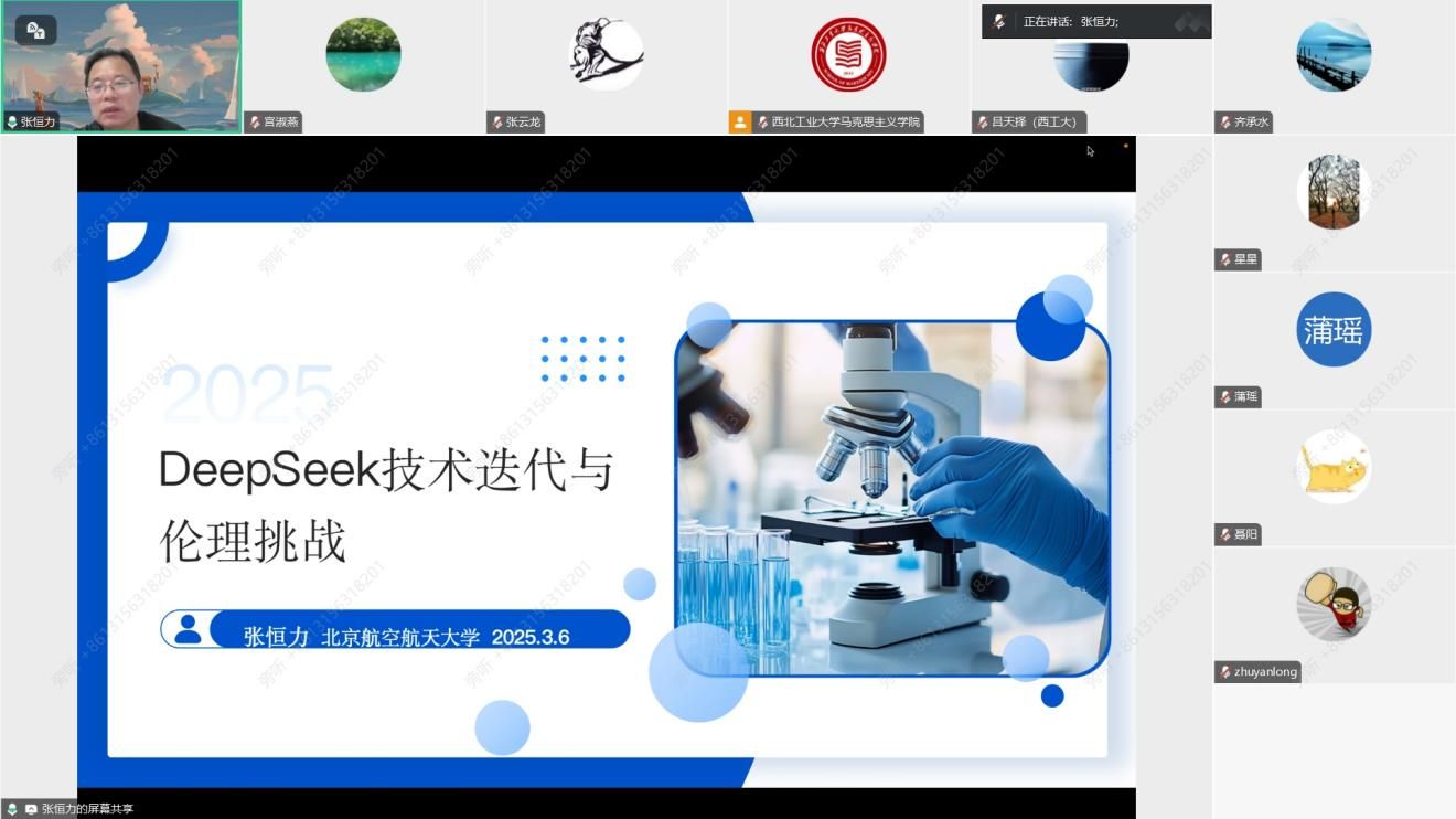 2026年国际足联世界杯《工程伦理学》课程组于3月6日晚上以线上会议的方式成功召开新学期集体备课会。本次会议由课程负责人宫淑燕副教授主持,特邀北京航空航天大学张恒力教授为主讲嘉宾,为课程组教师带来了一场题为《Deep Seek技术迭代与伦理挑战》的精彩报告。全体课程组成员相聚云端,共同探讨当下前沿技术对工程伦理教育的深远影响,为新学期的教学工作奠定坚实基础。