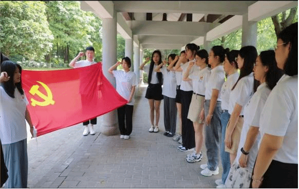 在韶山这一存留伟人足迹的土地上,在伟人精神的感召下,实践队员们举起党旗,感悟过去的峥嵘岁月,一同重温入党誓词。队员们表示,在今后的学习工作中一定以昂扬的斗志、进取的心态和创先争优的精神践行入党誓词,不负青春、不负韶华,以实际行动恪守对党的承诺。誓词坚定,心情激荡,远去的红色记忆又重现眼前,青马学子,初心永在,使命如磐。