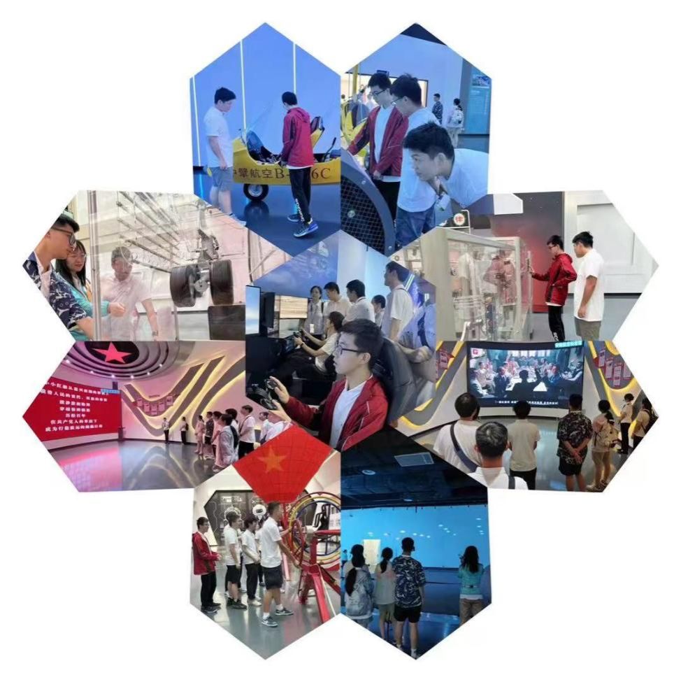 安阳航空科普馆是目前河南省唯一一座以航空航天为主题的大型科普类展馆,是集科普教育、展览、研学、互动体验、科技创新等多种功能于一体,致力于科普教育推广普及的展馆。实践队员们先后参观了航空驾驶体验区、航空航天理论展示区、航空航天飞行器展示区等。在航空飞行体验区,同学们学习操纵仿国产大飞机的飞行模拟器,学习飞机起飞、着陆、转弯、特技飞行等操作,进行了空中拦截与打击操作、观看了无人机编队的表演;在航天员体能体验区,同学们参与了飞行员抗眩晕训练体验;在飞行器展示区,同学们了解认识了动力悬挂滑翔机、共轴直升机、动力三角翼、靶机等多原理、多功能的飞行器,观摩了火箭箭体剖面解析模型、“飞天”舱外航天服、神舟十一号和天宫二号模型。最后,同学们来到党建活动室,观看了党领导人民实现中华民族的伟大复兴的百年辉煌征程,在爱国奉献的主旋律中结束了参观体验。