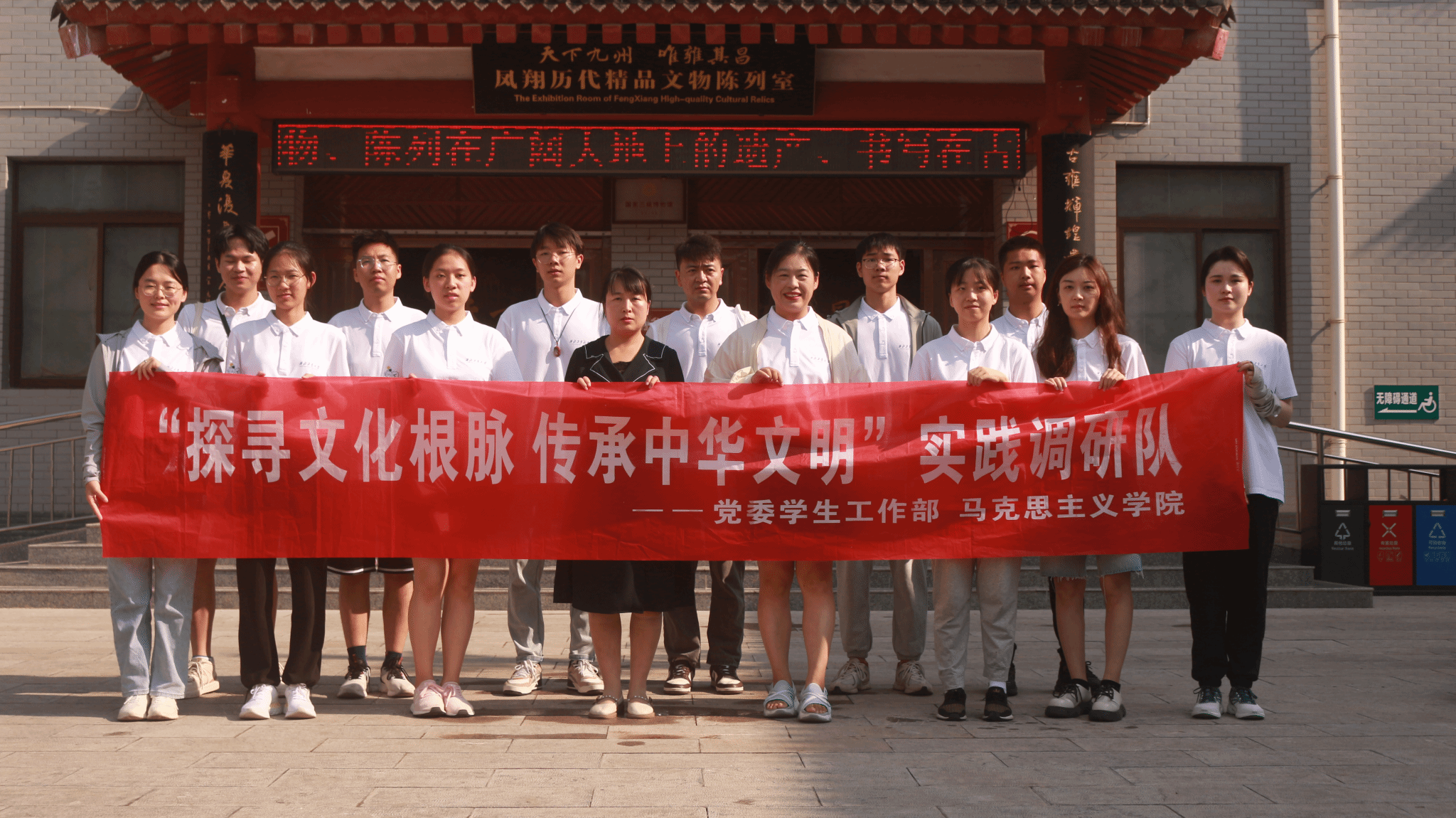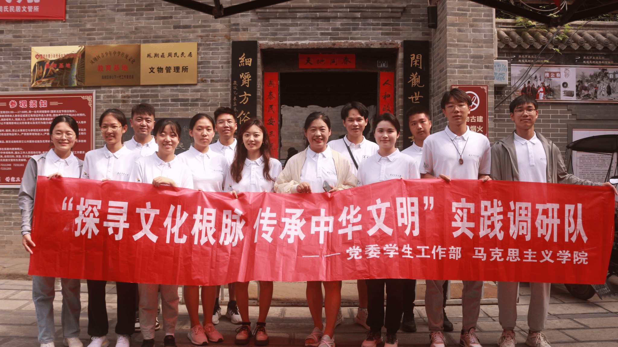 8月16日上午,实践队来到宝鸡市凤翔博物馆和周家大院开展研学活动。凤翔博物馆位于宝鸡市凤翔区文化路西段,其藏品上自原始社会下迄明清和近现代等各个时期的珍贵历史文物。周家大院位于陕西省凤翔县城关镇东大街,是明末清初陕西西府第一大财东周氏家族的象征,已有近四百年的历史。