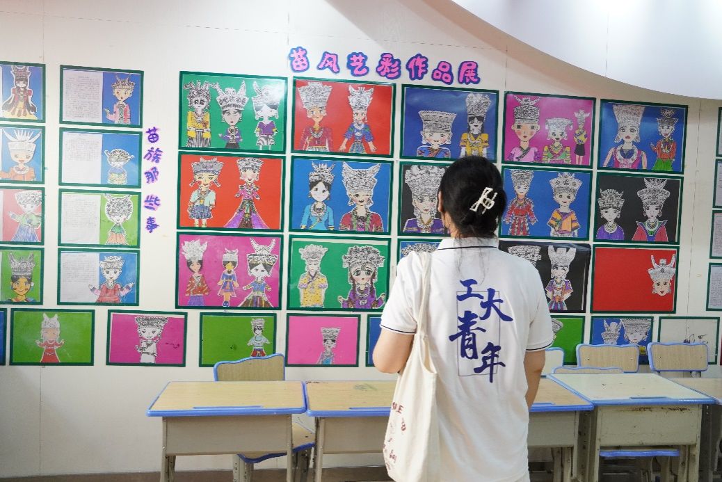 座谈会结束后,实践队成员在老师带领下参观了员工们的绘画、剪纸、征文等作品。