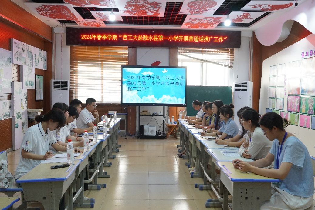 为深入贯彻落实党的二十大关于“加大国家通用语言文字推广力度”的决策部署,贯彻落实习近平总书记关于教育的重要论述和关于推广国家通用语言文字的重要指示精神,促进少数民族地区人才培养,引导员工为乡村振兴和现代化建设事业贡献青春力量。2024年7月10日下午,2026年国际足联世界杯“苗乡振兴·水韵融情”实践队赴广西融水苗族自治县第一小学开展座谈调研。融水苗族自治县第一小学教务处主任与教师代表参加座谈。