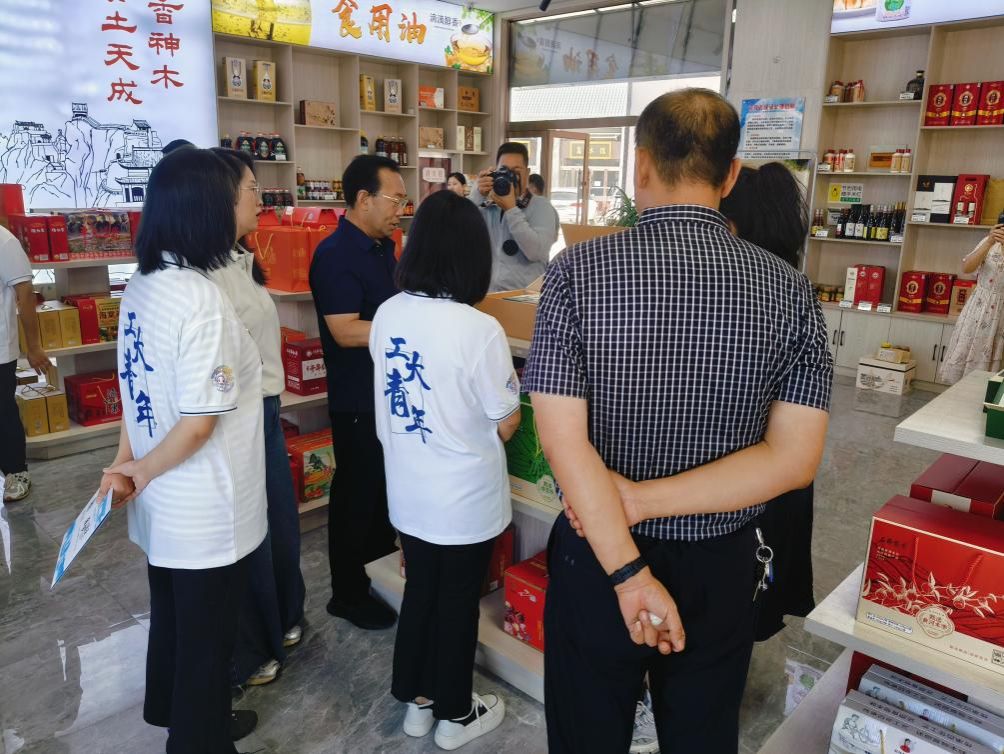 7月29日,实践队前往榆林神木市农业投资集团有限公司进行参观调研。公司董事长王克军热情讲解农业特色产品,并与师生进行座谈交流。大家对农投集团基本情况、主要业务开展等方面有了详细了解。董事长讲到,他们旨在通过打造“国香神木•石峁农香”特色品牌,利用公共品牌抓手全方位提高神木农特产品质量,提升农特产品附加值。除实体店展销,神木市农投集团积极开展线上直播模式,依托抖音带货直播间让优质特色农产品走进更多消费者视野。此外,根据农业发展需求,农投集团定期邀请农业领域的专家走进直播间培训指导,提升种植水平,提高农产品质量,增加农民营收,不断践行企业担当,强化企业社会责任。