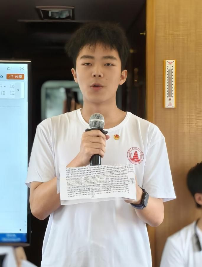 在精心布置的“课堂车厢”内,一场意义非凡的思政宣讲有序开展。本科生袁蔼玲以《从大别山望延安:不变的信仰与时代的传承》为题,讲解我党在延安和大别山两个革命老区的革命故事,展现信仰力量的一脉相承;本科生谢建年围绕《延安精神的过去,现在和未来》,回顾党中央在延安的奋斗历程,结合青年使命述说革命故事。二人的生动讲述,带领同学们沉浸式回望革命历史,让延安精神深入人心。