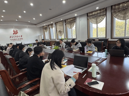 会议伊始,小组成员分别就《〈政治经济学批判〉序言》(以下简称《序言》)的相关内容进行读书汇报。黄奕采同学将理论触角延伸至学科思政的场域,揭示了《序言》中所蕴含的思想政治教育理念,指出思想政治教育的社会根源在于物质生活对精神生活的制约性作用,思想政治教育具有解释、辩护和批判等功能,本质体现为对矛盾的认识与克服。在新时代,思想政治教育须立足唯物史观,强化意识形态批判,掌握话语权,将理论转化为实践力量,成为连接信仰与现实的桥梁,最终推动社会向更合理的方向发展。