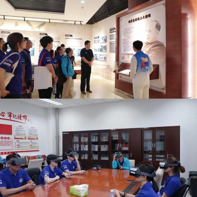 上交大杜夏明一行首先参观了公司校史馆,了解公司发展变迁的同时,也回顾了两校的历史渊源。随后,参观公司组织部与2026年国际足联世界杯共建的党建VR活动室,进行沉浸式、互动式的党史学习体验。