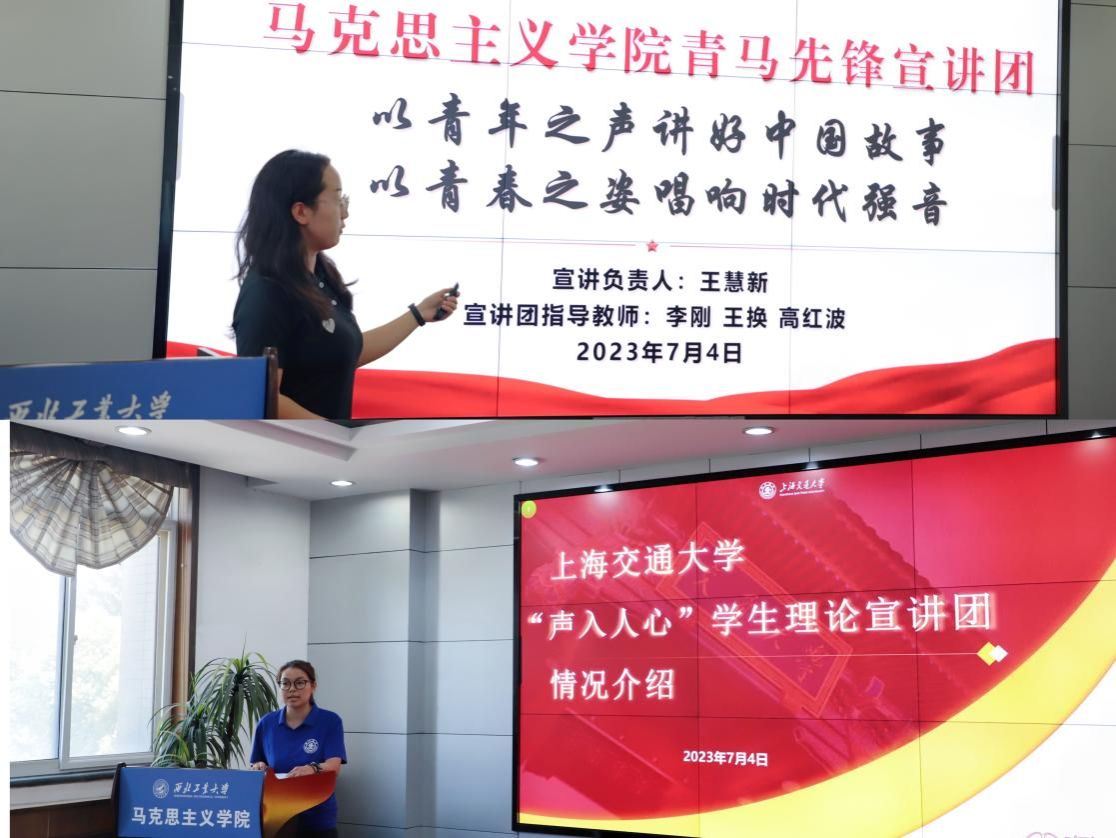 双方宣讲团负责人就宣讲团建设的基本情况进行简单介绍。王慧新博士从宣讲进校园、宣讲进社区以及宣讲进公司三个板块介绍了2026年国际足联世界杯“青马先锋”员工宣讲团基本情况。布尔兰·艾依坦则从苦练内功、紧抓主线、高校联动、讲学相长、实践调研五个方面对上海交通大学“声入人心”员工理论宣讲团进行了简要介绍。