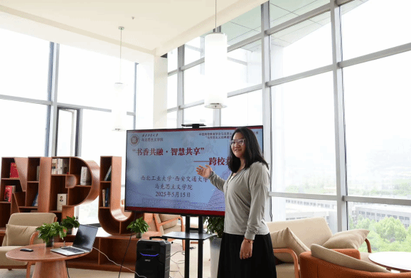 活动从两校员工读书小组的专题分享拉开序幕。西安交通大学思源读书小组的王赫同学聚焦马克思“经济基础与上层建筑”的经典理论,结合全球产业链重构与平台经济案例,剖析了数字经济时代生产关系的变革逻辑。她指出:“外卖骑手与平台算法的矛盾,正是马克思‘异化劳动’理论的当代印证。”小组另一成员崔萌同学则以短视频文化、网络社群现象为切入点,探讨社会存在对社会意识的形塑作用,提出“青年需用马克思主义方法论解构信息茧房”的思考。