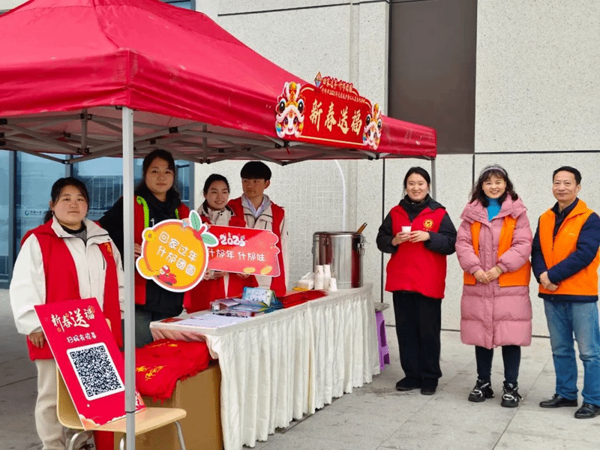 为让归乡旅客感受到浓浓的家乡情,团队今年在车站设置了返乡打卡点,志愿者们为返乡的务工人员发放春联和福字。伴随着红色的福字与春联,旅客们纷纷驻足合影,笑容中透着对家乡的无限眷恋。