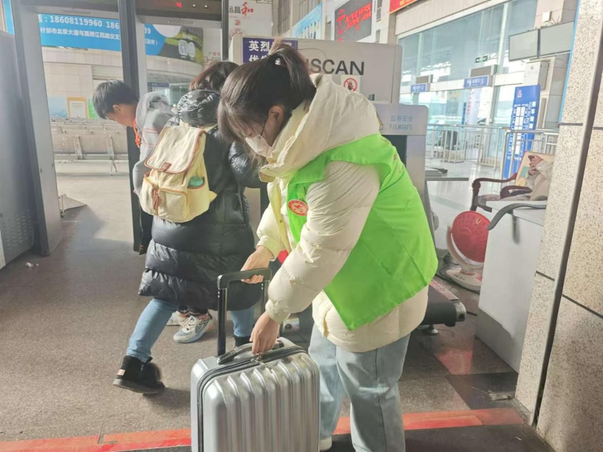 春运期间,志愿者们分布在当地的安顺汽车站和什邡西站等主要交通枢纽。在这些繁忙的车站,他们不只是帮助旅客搬运行李,更多的是在细节中体现出志愿者的责任与关怀。