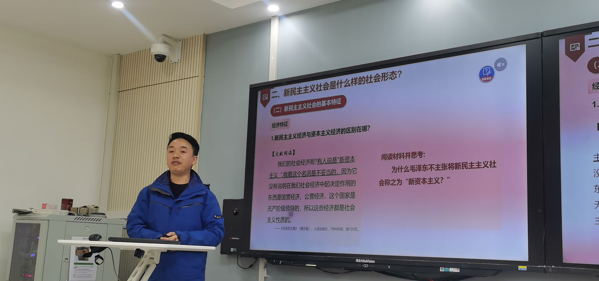 赵沛副教授是全国高校思政理论课教学能手、首届全国高校教学展示一等奖获得者、陕西省教学展示一等奖获得者,兼任省电视台党史节目顾问及撰稿、省新闻广播理论解读嘉宾,是中组部在陕调研唯一高校系统与谈专家。本次示范课展示题目是“中国特色社会主义理论体系的形成与发展”,主要聚焦中国特色社会主义理论体系形成与发展的国际背景,重点解读了改革开放以来世界格局和国际局势风云激荡的变化。他通过生动鲜活的案例和丰富的数据,展现了我们党在深刻洞察国际形势变化和世界发展趋势、科学判断时代主题和时代特色、深刻把握人类社会发展规律的基础上形成和发展了中国特色社会主义理论体系。