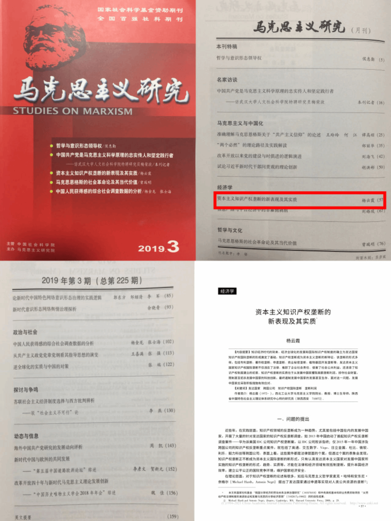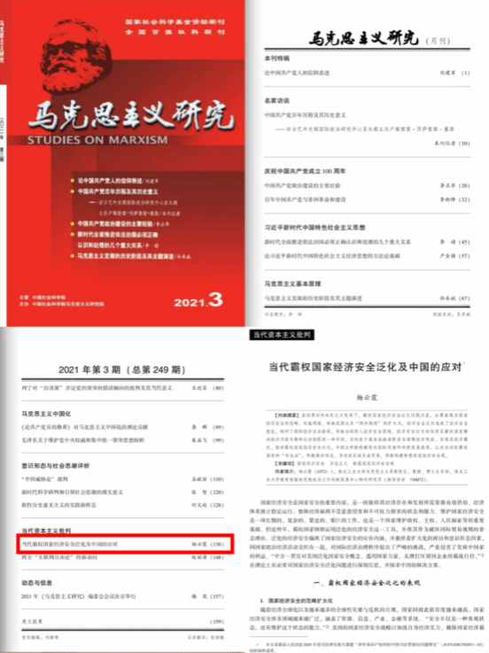 公司共发表学术论文470余篇,其中CSSCI论文近180余篇,中央“三报一刊”20余篇。高水平A级论文6篇,杨云霞教授在2019年《马克思主义研究》上发表《资本主义知识产权垄断的新表现及其实质》,揭示了发达国家所实施的知识产权垄断表征与本质,提出我国应采取的对策;2021年发表《当代霸权国家经济安全泛化及中国的应对》,深刻阐释了面对当代霸权国家经济安全泛化问题。